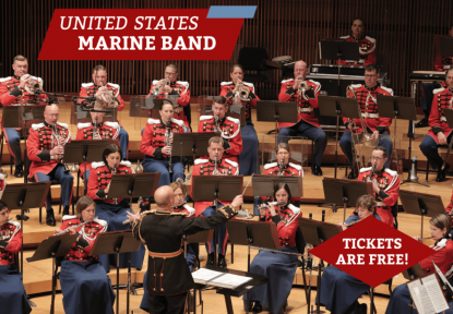 "The President's Own" Col. Jason K. Fettig, Director Doors open at 6:45pm. Tickets valid until 7:15pm. Due to security precautions, no large bags or backpacks will be allowed in the venue. Maximum of 4 tickets per ticket order. Performance in Lew Klein Hall Free admission, request tickets here |