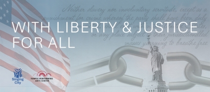 With Liberty & Justice for All explores the stories that have shaped the American experience, asking what those words truly mean, and for whom. Through music, narration, and multimedia, the program reflects on founding ideals, immigration, and the ongoing pursuit of freedom for African Americans. Featuring Damien Geter’s 1619, incorporating the text of the 13th Amendment, the performance also includes short video reflections from the Singing City community. Together, these elements create a powerful, shared dialogue between past and present, offering a moving choral commentary on our nation’s evolving promise.